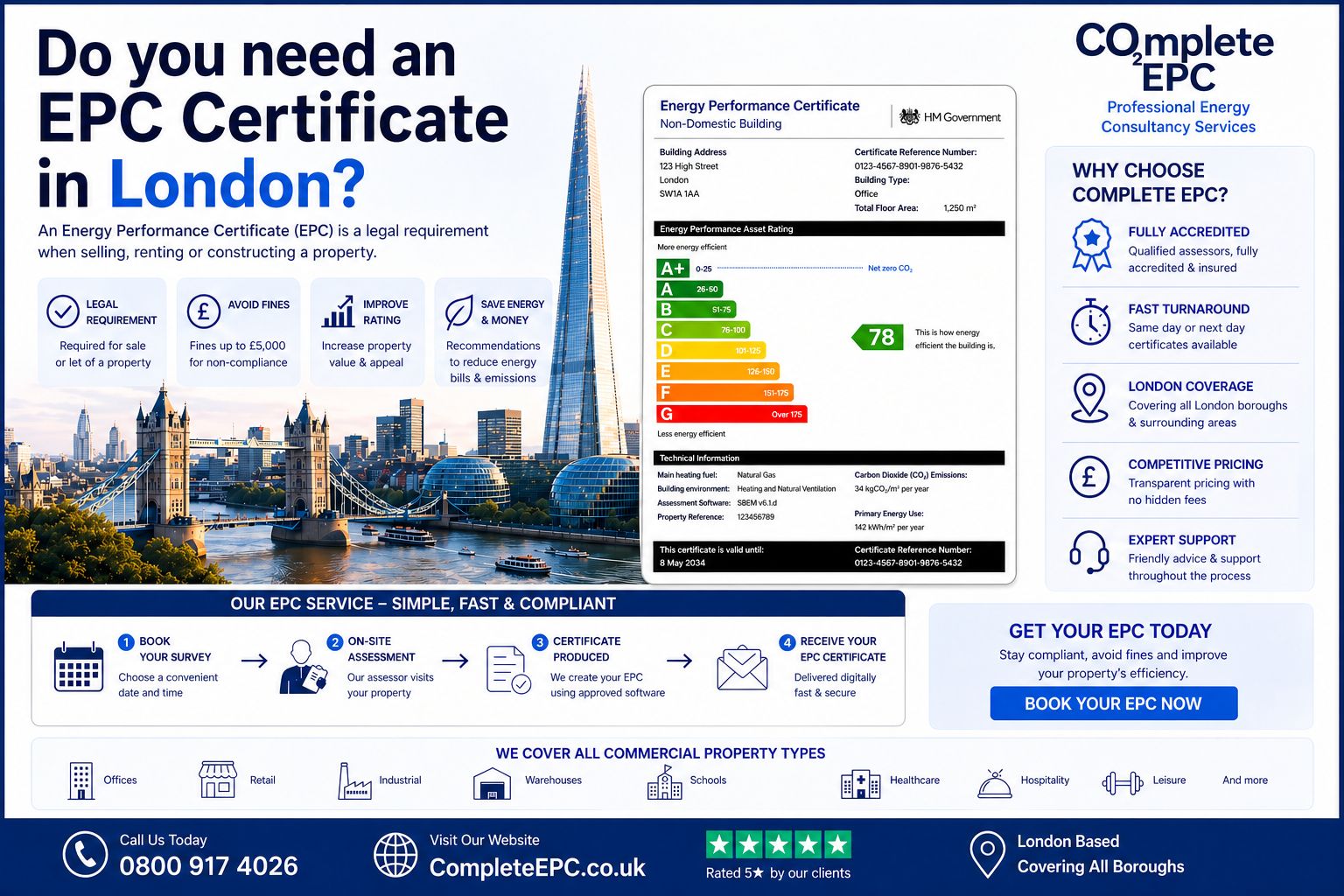 Professional Energy Consultancy Services for Your Commercial Property. What Makes Us Leaders? Whether you’re selling, buying, leasing, or renting out a property, keep in mind that EPC is a legal requirement. Covering the entirety of London, we guarantee you…..